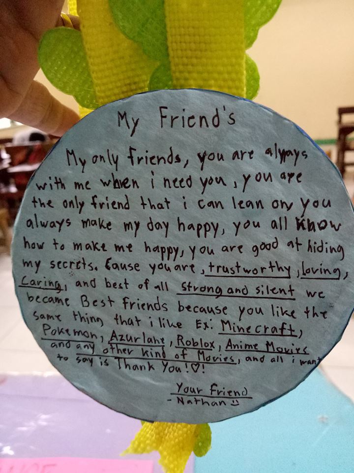 An activity called The Friendship Medal proved especially popular. This simple task asked children to express their appreciation for someone in their lives and, in doing so, build confidence in others.